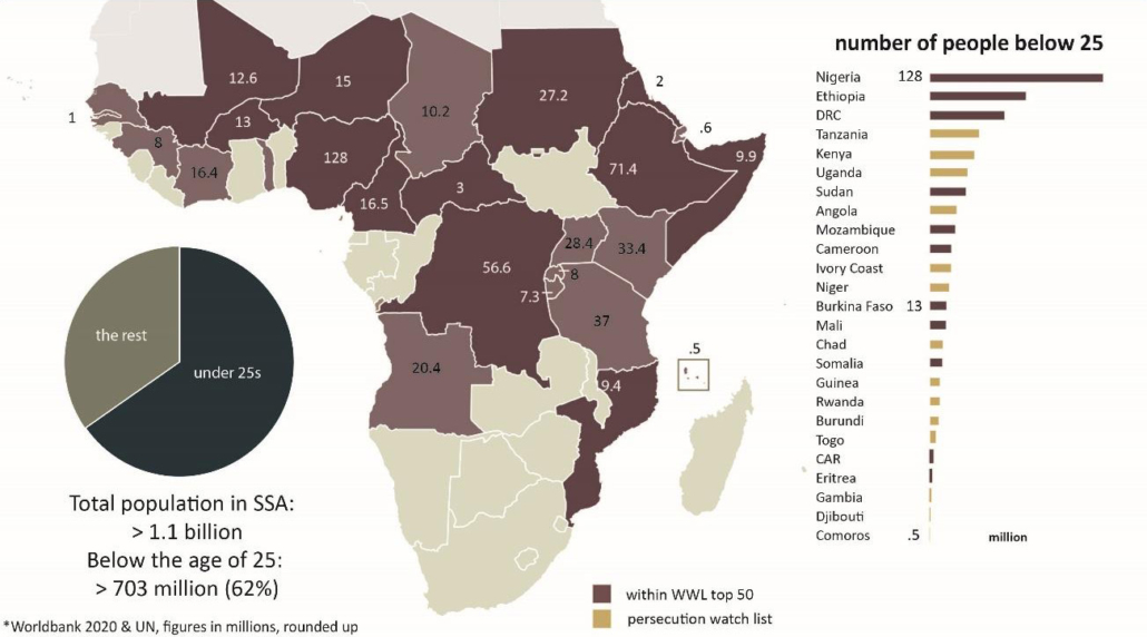 The median age in Sub Saharan Africa is only 20, and 62% of the population are under 25. With youths between 15 and 24 nearing 200 million, this is the largest generation our region has ever had to raise. Youth’s presence as prerequisite for the future of the church, goes without saying. Because of the large percentage they represent, youths are also the most affected by the growing, often violent, persecution in Africa.